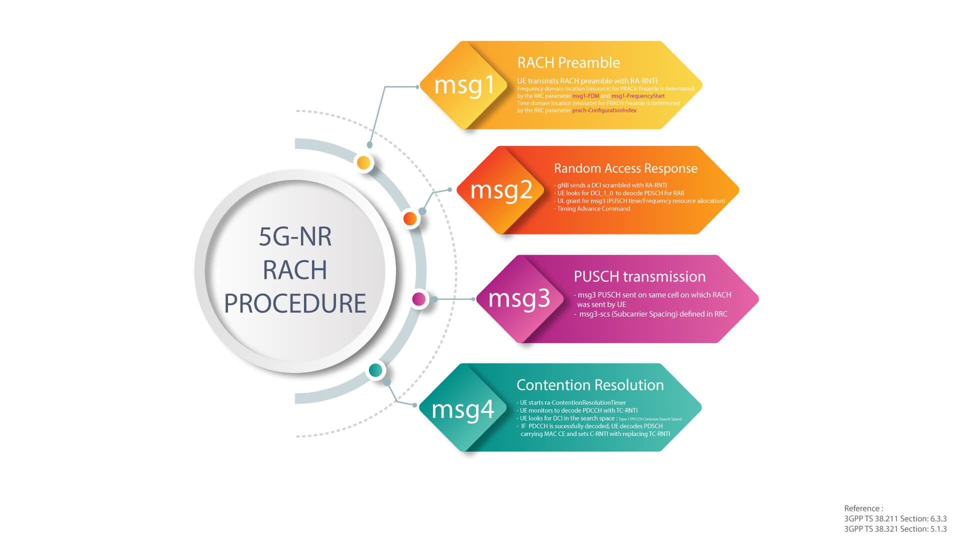 - Msg4: RRC Setup Complete/Connection Establishment Complete